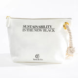 Sustainability Is The New Black® Gift Set by Terra & Co. is an eco-chic oral-care ritual in a beautifully recycled toiletry pouch. This thoughtfully curated kit includes: