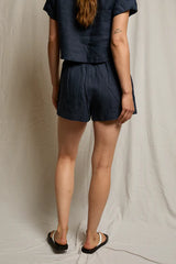 The Malin Short is the embodiment of warm weather ease. We designed them with a relaxed wide-leg opening, flat front pockets and a finished hem that keeps it polished. The high-rise smocked elastic waistband provides a flexible fit and gathered effect, pairing it perfectly with any tee.