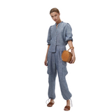 It's made with the softest 100% linen, pre-washed and softened for a super easy handling and lovely drape. It features a mandarin neck, shell buttons and long balloon sleeves with elastic cuffs.