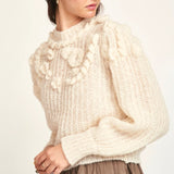 - Light & fuzzy pullover sweater with hand embroidered embellishments