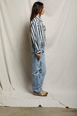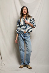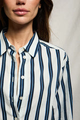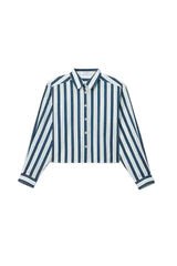 Naomi - Longsleeve Cropped Button Top - Navy/Cobalt Stripe
