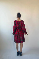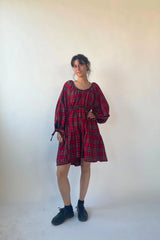The mini Josie dress is an elegant, classic tiered dress that features an elastic waist and ethereal puff sleeves with bow tie cuffs, providing a sophisticated silhouette without compromising comfort.