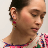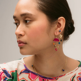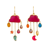 Cloud and Rain Chain Drop Earrings - Pink/Orange/Blue