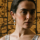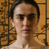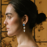 Materials: Ethically sourced 18k gold-plated silver, blue lace agate, cameo, shell and vintage glass.