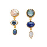 Three Charm Moving Drop Earrings - Shell/Eye/Blue