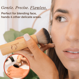 The Bamboo Kabuki Brush for Face is designed for seamless blending and effortless application of powders, bronzers, blushes, and mineral foundations. Crafted with ultra-soft, densely packed synthetic bristles, this brush buffs product into the skin for an even, airbrushed look without streaking or caking.