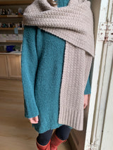 - Oversized knitted scarf with box stitch detail and wide rib at ends