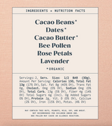 Lavender Rose: Organic Cacao Beans, Organic Dates, Organic Cacao Butter, Bee Pollen, Rose Petals, Lavender