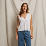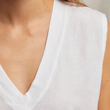 Margot - Cotton Sleeveless V-Neck Tee - White