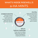 Powered by Hydroxyapatite! A mint as powerful as your toothpaste. Strengthen your enamel with Hydroxyapatite after coffee, after dinner, whenever. Don't settle for mints that don't work ever again. Remineralize anytime, anywhere with a-HA Mints, powered by RiseWell’s hydroxyapatite. Our mints have the same remineralizing power as our toothpastes delivered in a portable package. A world-first - freshen your breath while you protect, strengthen and whiten your enamel.