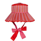 The Ravello is specifically designed to collapse and fold like origami, due to the sunray pleats, for ease of travel. Wide ties are provided at the base of each hat to be used for anchoring during breezes and to add a luxe statement.
