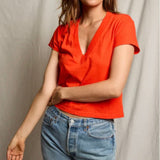 Alanis - Recycled Cotton V-Neck Tee - Tomato