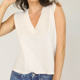 Margot - Cotton Sleeveless V-Neck Tee - Sugar