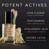 This serum contains thousands of sparkling micro pearls, each packed with fresh, nutrient-rich actives for concentrated calming benefits and deep hydration to smooth the look of pores and fine lines. The Star Flower, Niacinamide and Hyaluronic Acid infused bubbles bursts on contact, maximizing potency and results.