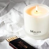 Malaya's 100% natural aromatherapy candle candle is made with pure Coconut Wax and scented with essential oils. An enticing floral bouquet with notes of Rose, Osmanthus, Geranium, Bitter Orange and Bergamot wraps you in a heady and clean aroma that is seductive and timeless.
