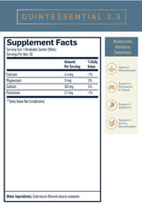 QuintEssential™ 3.3 is a nutrient-rich, raw marine fluid harvested from the depths of plankton- rich ocean blooms and cold-sterilized to retain its healing properties. QuintEssential™ 3.3 is formulated at a hypertonic concentration that is higher than that of our plasma and can readily move into cells. It can help lift the body up, increasing energy and supporting protein synthesis, adrenal function, cellular division, remineralization and bone formation. QuintEssential™ 3.3 can have an instantaneous revitalizing effect, and can help increase alertness and stamina. It can help support any major physical or psychological effort.