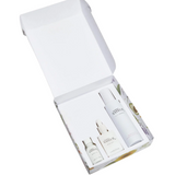 After double cleansing, add 3 to 5 pumps of holi (water) to the palm of your hand and gently pat into skin. Then, mix a dash of holi (c) with 3 spritzes of holi (water) and apply to the complexion. To finish, massage 4-5 drops of holi (oil) into the face, neck, and décolleté. May also add to your favorite sunscreen or foundation for a dewy glow.
